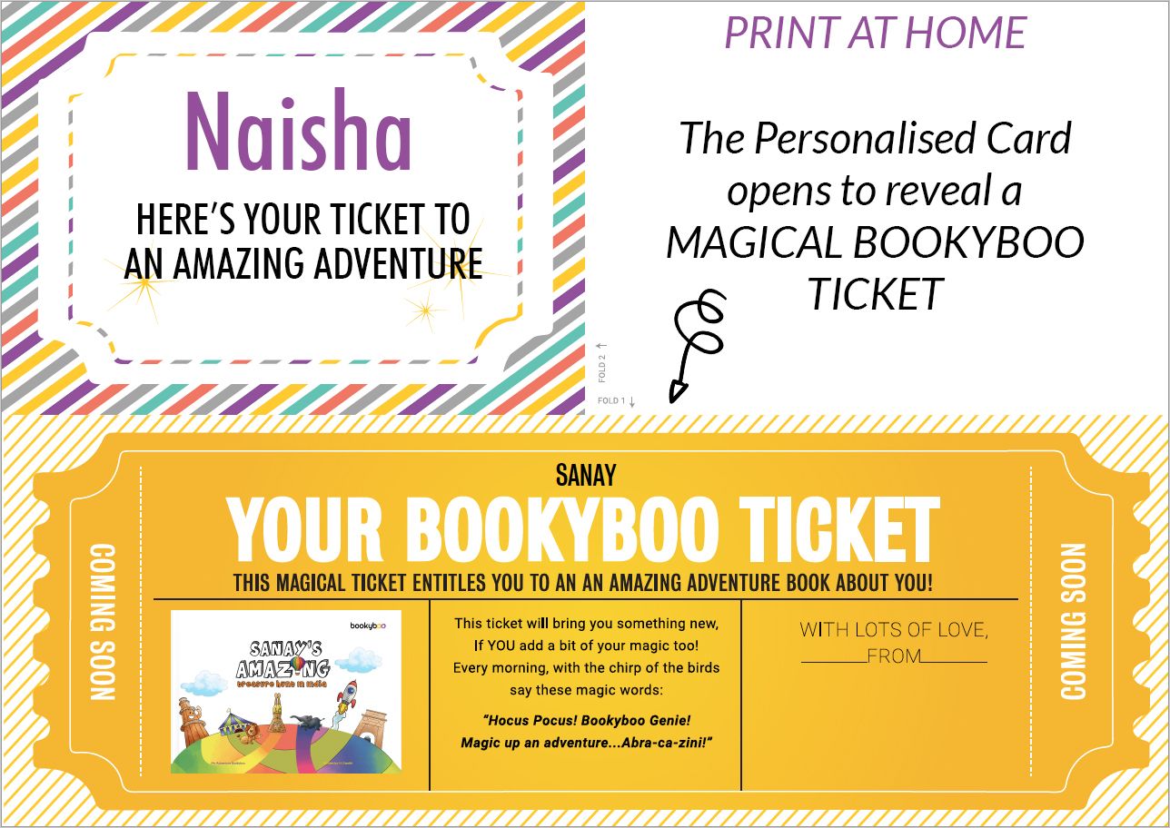 Is your Bookyboo gift arriving too late? We have A SPECIAL TICKET for your little one. This personalised printable card could save the day. You will be able to download yours at the cart stage.
